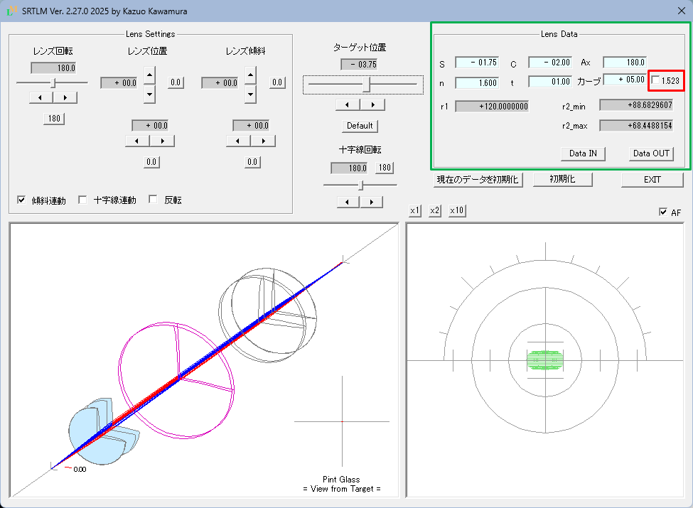 [Lens Data]セクションに追加されたチェックボックス[1.523] (赤枠の中)