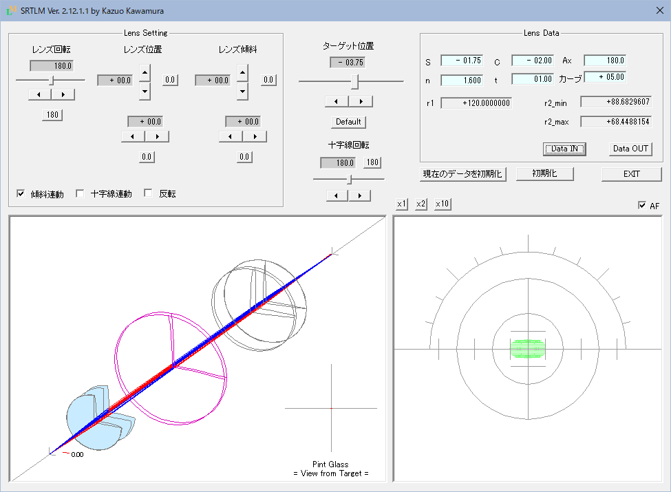 チェック ON : 「カーブ」に伝統的なクラウンガラスの屈折率 1.523 を使用する。