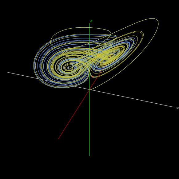 Select an equation from the dropdown box and click [Start] to begin drawing the solution trajectory. After drawing, you can observe the solution trajectories from various angles by changing the "Angle" and "Vertical Axis".